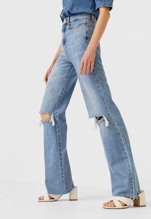 Отвори можуть бути як вузькими (5-10 см), так і широкими (до 50 см). Носіть джинси з грубими черевиками, утепленими кросівками або чоботями на підборах.