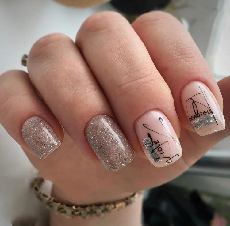 Модні нігті прикрашені різними написами – від зізнань у коханні на нігтях до слоганів та девізів. Спробуйте подібні написи виконати на своїх нігтиках, використовуючи в тандемі інші нейл-мотиви – наприклад, омбре або втирання. Буде дуже круто та стильно.