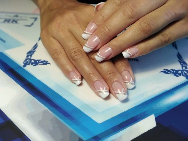 Вільний край нігтя можна виділити не лише стандартною круглою посмішкою. Оригінально виглядають різні діагональні смужки або комбінація діагональної смужки та стандартної горизонтальної. Також можна зробити діагональний френч за допомогою хвилеподібних чи асиметричних смуг.