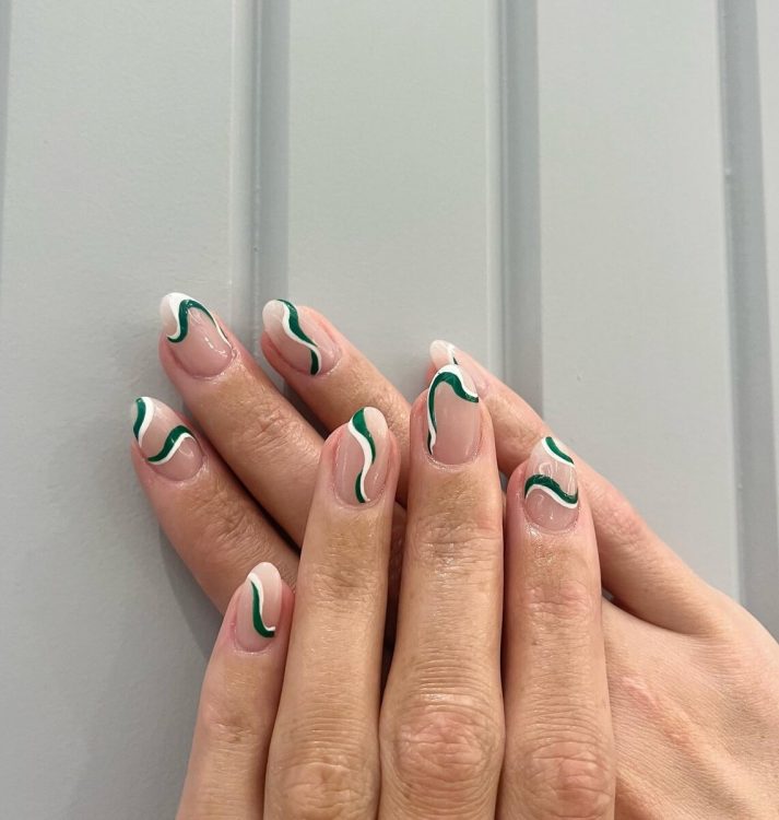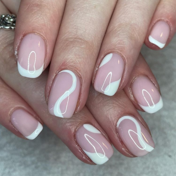Якщо ви не можете відмовитися від класичного французького манікюру, цей дизайн, що поєднує френч та білі хвилі, ідеально підійде вам.