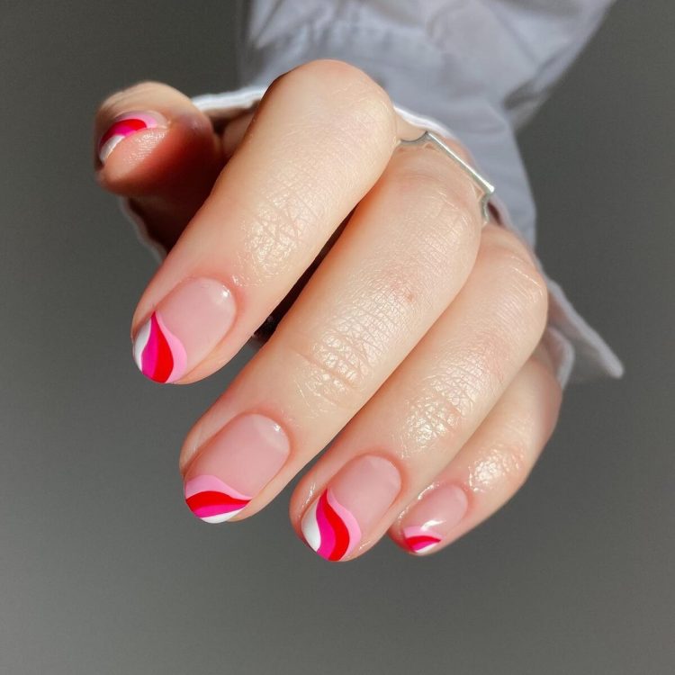 Білий французький манікюр – це класика, яка трохи набридла, чи не так? Спробуйте додати до традиційного френча кілька червоних та рожевих завитків.