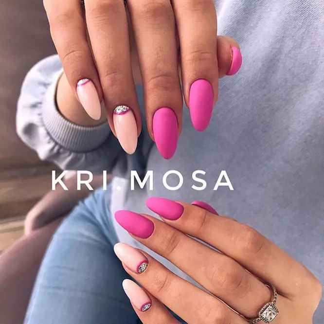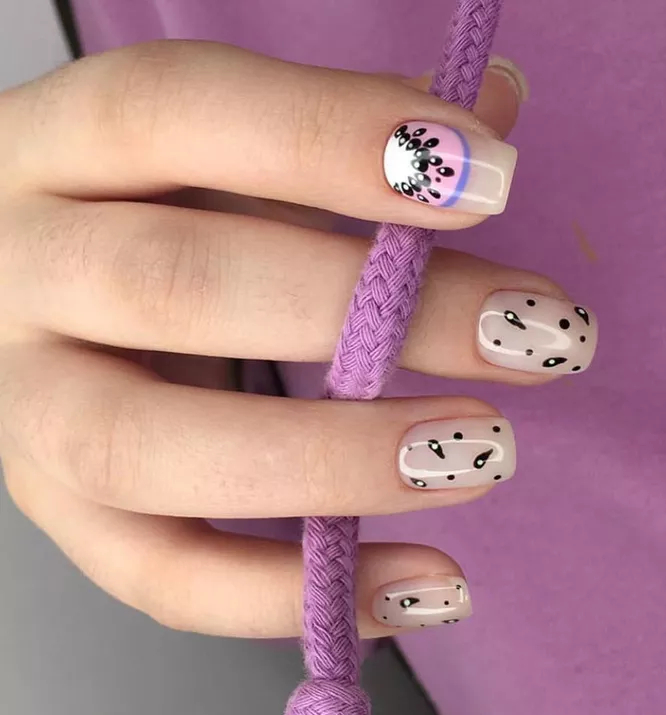 Любите нюдовий манікюр і часто робите саме його на короткі нігті квадратної форми? Спробуйте піти трохи далі та розгляньте рожевий колір. Ніжний і весняний колір ви просто зобов’язані вигуляти у цьому сезоні на своїх нігтях! Використовуйте його в класичному френчі, додавши яскраві елементи, поєднуйте їх із золотистими принтами або пастельними відтінками. Мініатюрні стрази та мікронаклейки теж підійдуть!