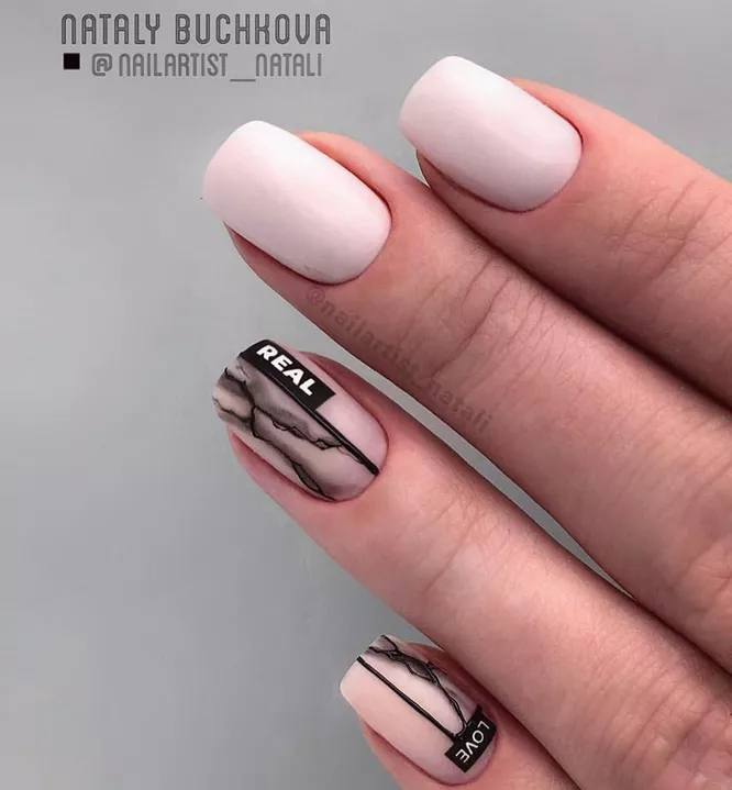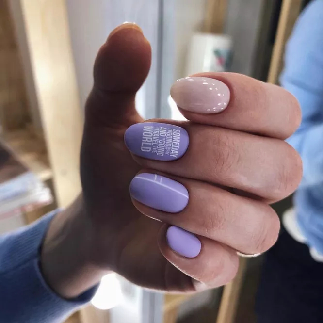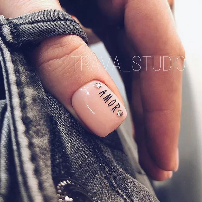 Невичерпне джерело натхнення! Можна «набити» на нігті улюблену цитату, що мотивує висловлювання або просто слово «любов» — тією мовою, яка вам більше подобається. Слайдери або будь-який інший дизайн з написами зроблять манікюр на короткі нігті квадратної або круглої форми цікавішим і незабутнім.