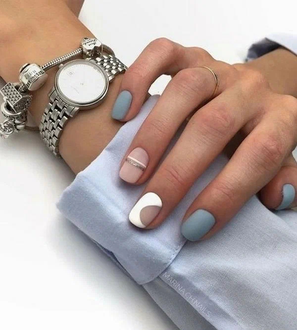 Такому манікюру притаманні приглушені спокійні відтінки лаку, відсутність додаткового дизайну або легкий декор у стилі мінімалізм, невелика довжина нігтів.