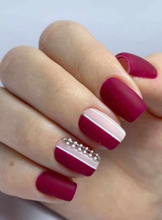 Елегантний манікюр у рожево-червоних відтінках з білими та сріблястими деталями стане справжньою окрасою вашого образу. Він досить яскравий, щоб не бути нудним, але при цьому не надто зухвалий.
