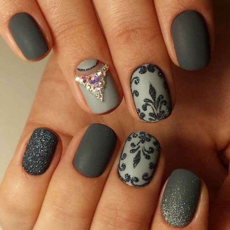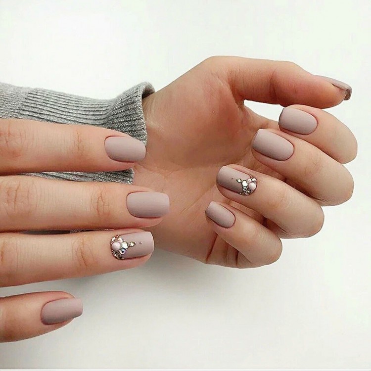 У ситуації, коли малюнки на нігтях не подобаються, але все ж таки хочеться різноманітності, можна використовувати блискітки або стрази. У комбінації з матовим покриттям вони виглядатимуть помірно та особливо святково.