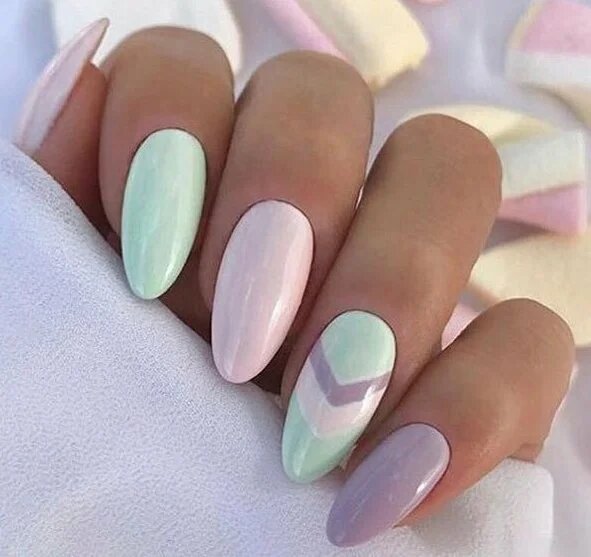 Якщо говорити про рекомендовану форму нігтів для пастельного манікюру, то тут все залежить від ваших рук і того, що саме до них більше підійде. Такий нейл-арт однаково ефектно виглядає як на коротких, так і довгих, як на квадратних, так і на овальних нігтиках. Особливо чарівно виглядає на нігтьових пластинах мигдалеподібної форми.