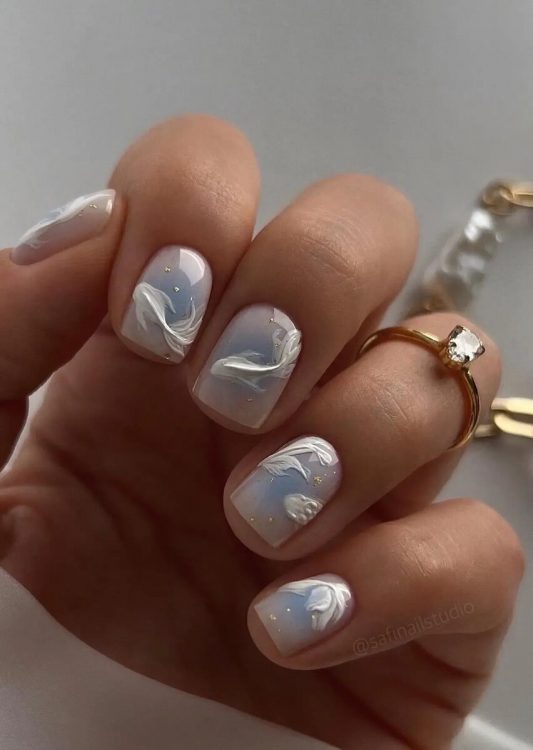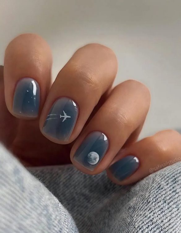 Той факт, що сірий – це досить стриманий та строгий колір, не означає, що ваш манікюр не може бути легковажним. Цей дизайн, натхненний небом, ідеально підійде всім любителькам помріяти.