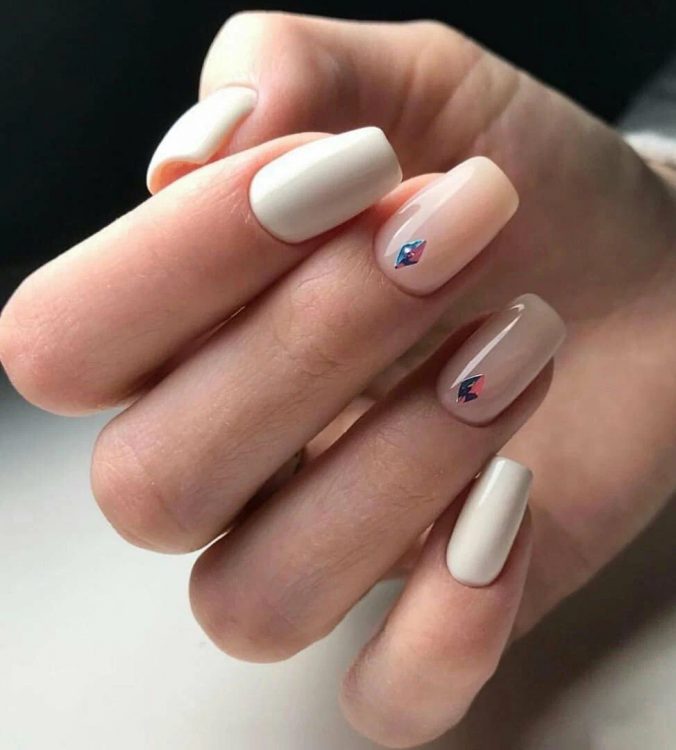 Нігтьовий дизайн у світлій гамі чудово виглядає у будь-якому виконанні. Навіть з додаванням насичено-яскравих або темних фарб, яскравого декору, він виглядає повітряно-витончено, освіжає і надає образу легкого нальоту романтичності, невинності. У поточному сезоні відомі нейл-майстри пропонують наступні варіації: