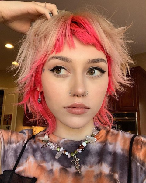 Об’ємні короткі пасма спереду і довші позаду – саме так виглядає стрижка маллет. Щоб перехід між довжиною не був таким помітним, задні пасма можна вкоротити. Вийде щось середнє між маллет і піксі.