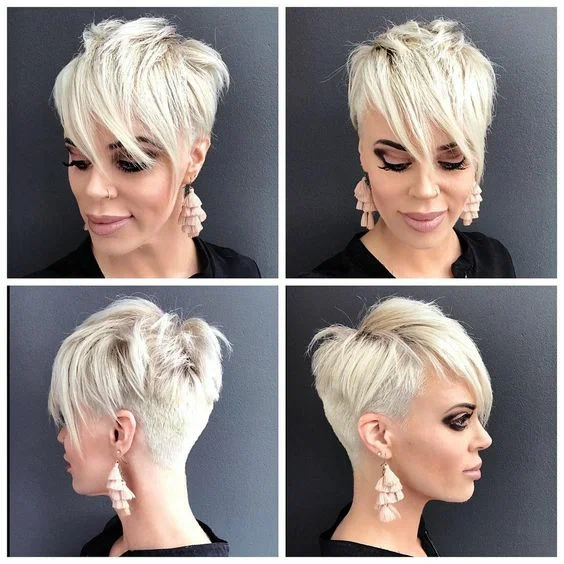 Асиметрична коротка стрижка піксі з косим чубчиком і скуйовдженою маківкою – ідеальна комбінація для тих, хто любить об’ємні укладки. З цією моделлю стрижки ви назавжди забудете про те, що таке тонка шевелюра позбавлена прикореневого об’єму. За рахунок косого чубчика овал обличчя виглядатиме максимально струнким та підтягнутим.