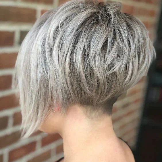 Чарівна стрижка боб з красивою круглою потилицею і градуйованим ефектом по всій довжині волосся підійде старшим жінкам, які мріють мати прикореневий об’єм без виснажливих і довготривалих укладок.