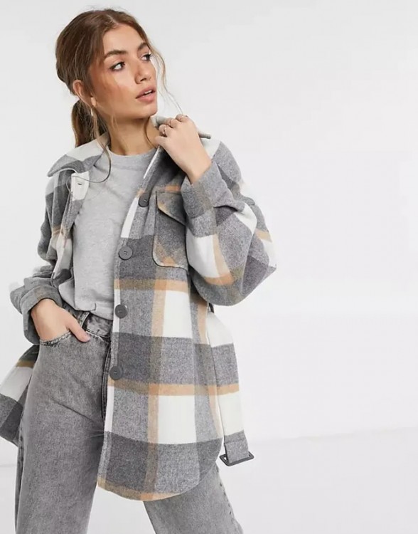 Для образу в вінтажному стилі підійде вельветова куртка сорочкового крою. Варто доповнити її оверсайз-футболкою, широкими джинсами і масивними кросівками.