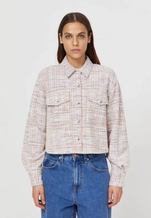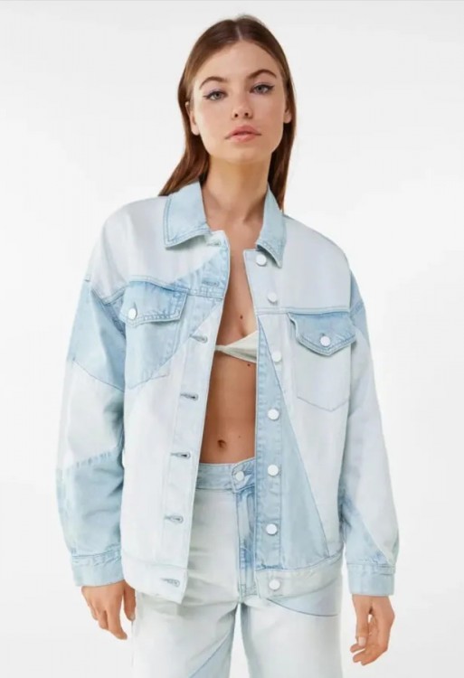 У цьому сезоні в моду повернулися речі в техніці петчворк. Зверніть увагу на мінімалістичну джинсову куртку. Пропонуємо носити її з контрастними джинсами (наприклад, темно-синіми) і яскравими топами.