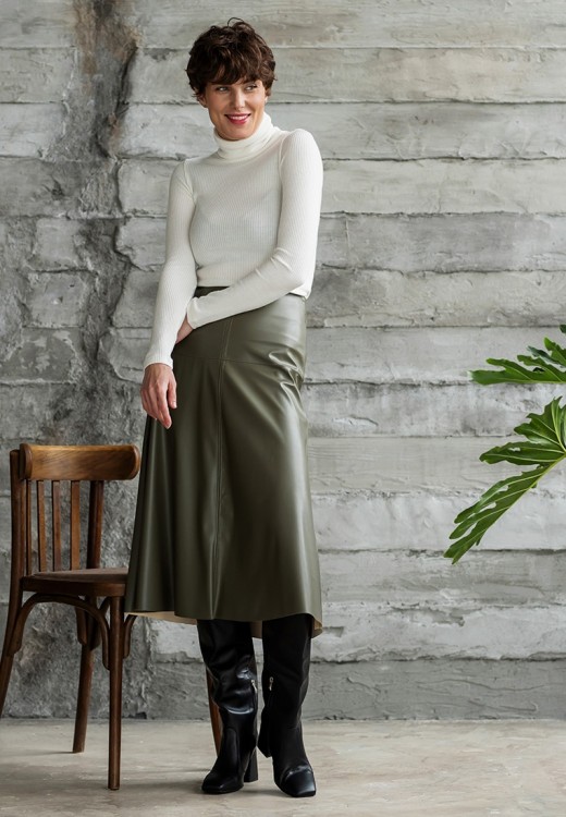 Особливу увагу стилісти зосереджують на шкіряних спідницях міді та максі довжини. У зимових колекціях присутні різні за своїм кроєм моделі з вирізами, асиметрією, великими кишенями, завищеною талією, трапецієподібного та силуетного фасону.