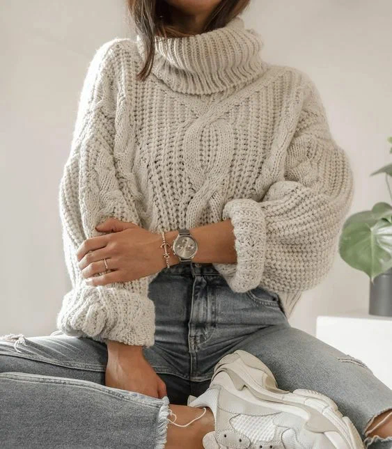Ще один універсальний і жіночний тренд цієї зими – це білі светри в мінімалістичному виконанні. Цей розкішний тренд виглядає чудово на красунях будь-якого віку і статури. Зверніть увагу, як гармонійно і цілісно білі в’язані светри виглядають з трикотажними, традиційними штанами, жіночними спідницями та іншим стилістичним низом.