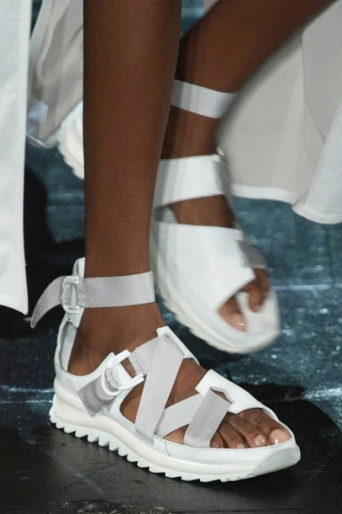 Взуття на високій тракторній підошві, з перемичками та на зав’язках – ось загалом і всі основні критерії ідеального взуття для теплого сезону. Стилісти вирішили віддати перевагу різній колірній палітрі, в яку будуть входити, як універсальні кольори, так і більш яскраві.