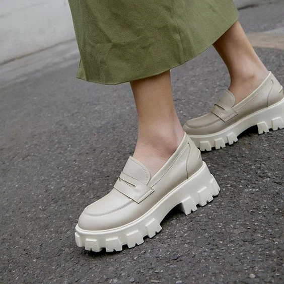Лофери на тракторній підошві зі світлої шкіри це саме те, що потрібно на кожен день.