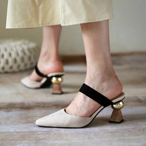 Ефектні слімбеки представлені до вашої уваги. Загостріть свою увагу на кожній дрібниці в цій моделі, а саме: незвичайному за формою каблуку, що складається з металу та дерева, якісному матеріалі та акцентній перемичці.