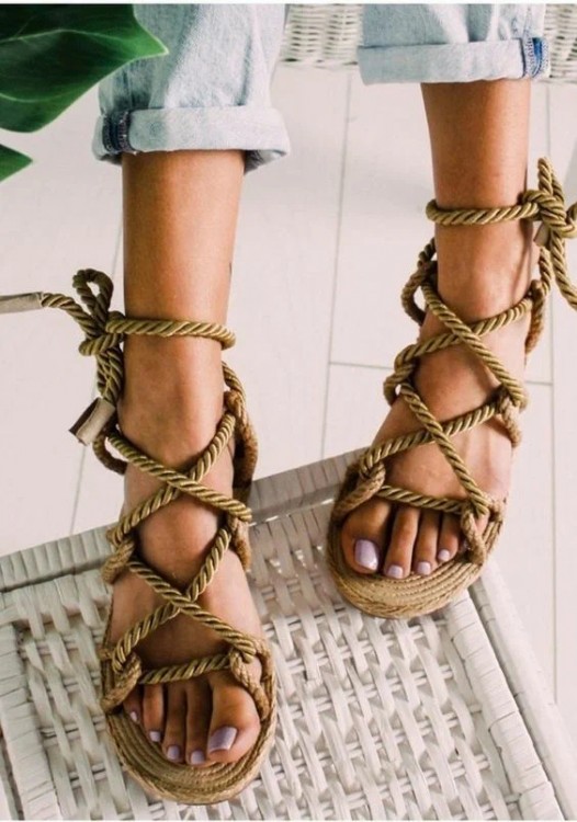 Прекрасні босоніжки зі шкіряними ажурними вставками, доповнені тонкими шнурками – це не тільки дуже красива, але й досить комфортна і практична модель. За рахунок шнурівки по всій довжині це взуття добре фіксується на нозі і не спричиняє дискомфорт під час довгих прогулянок.