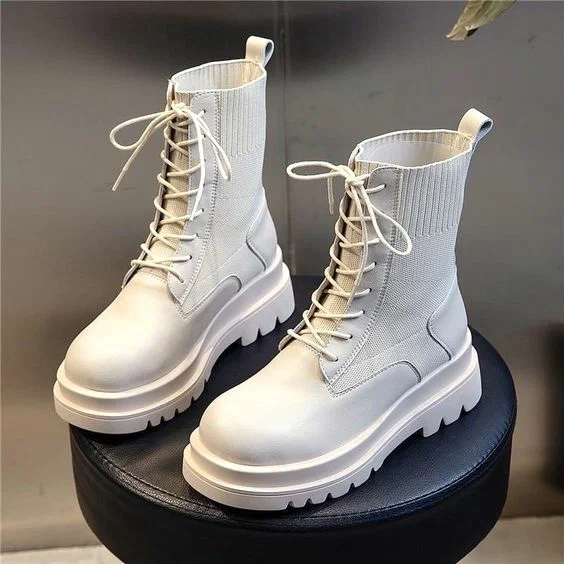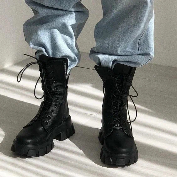 Масивні черевики на шнурівці та тракторній підошві у чорному, білому або бежевому кольорах – найкращий варіант зимового взуття на кожен день. У такому взутті вам не страшний снігопад, морози, сльота або ожеледь. Стилізувати цю модель можна як з жіночним вбранням, так і спортивними костюмами.