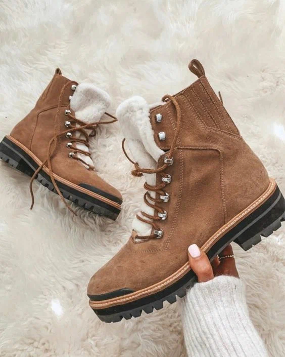 Черевики із замші на шнурівці з хутряними вставками – маст хев зими 2022, який припаде до душі модницям різного вікового діапазону.
