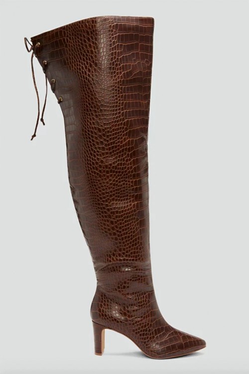 Ефектні ботфорти зі шкіри з гострим носом на високому каблуці – взуття, яке прикрасить не лише повсякденні але й святкові зимові аутфіти.
