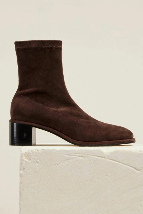 Для офісної роботи або святкового заходу гуру моди пропонують нам ультрамодні замшеві ботильйони-панчохи базового кольору. Стійкий каблук зробить ваші зимові луки максимально жіночними та елегантними.