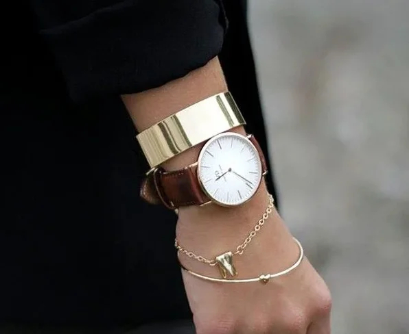- З годинником. Вельми практичне поєднання, в якому до браслета йдуе наручний годинник. Це дозволяє і виглядати стильно, і не спізнюватися.