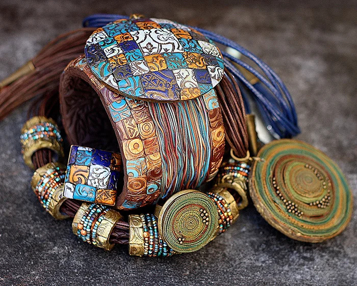 Відмінною особливістю таких стильних прикрас є використання натуральних матеріалів, переплетення шкіряних ремінців і характерні, трохи своєрідні, візерунки.