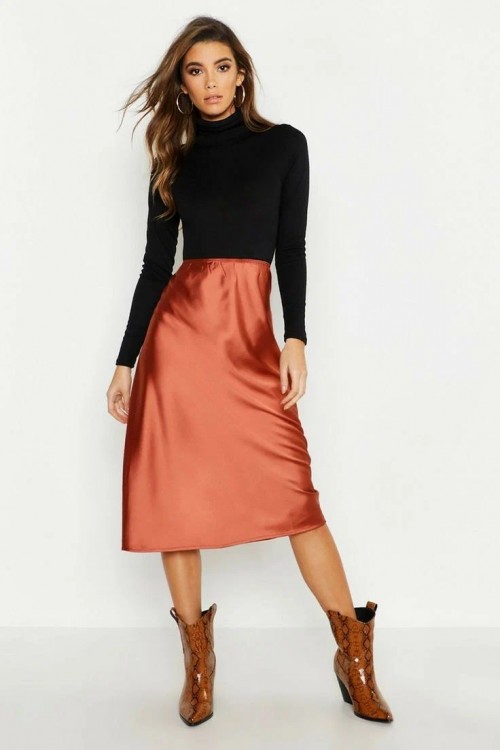 Шовкова спідниця найкраще впишеться у базовий гардероб. Це той випадок, коли вона може поєднуватися хоч із водолазкою, хоч із шовковою блузою. Тому з нею однією можна скласти як святковий розслаблений образ, так і більш стриманий, який чудово підійде для роботи. Для таких цілей варто вибрати спідницю в нейтральному відтінку – бежевому, рожевому чи персиковому.