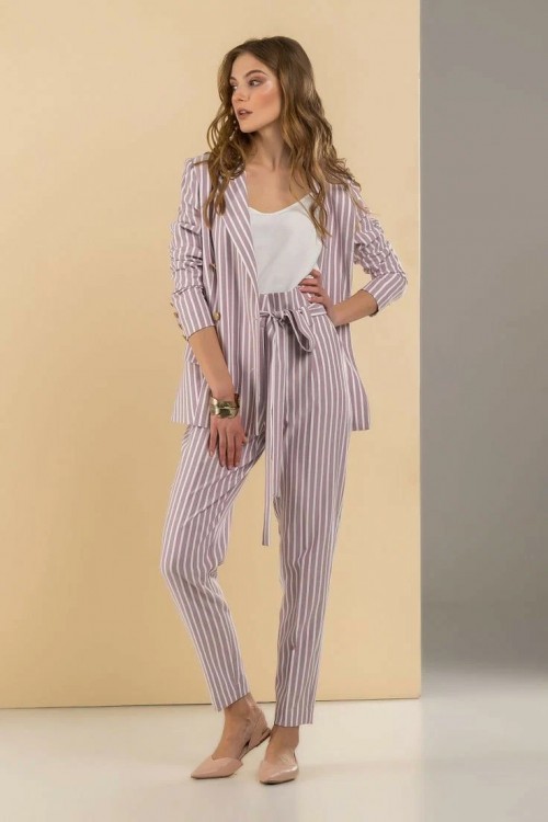 Наприклад, брючний костюм у смужку візуально витягне пропорції і, в доповненні з аксесуарами, буде актуальним для вечірнього виходу.