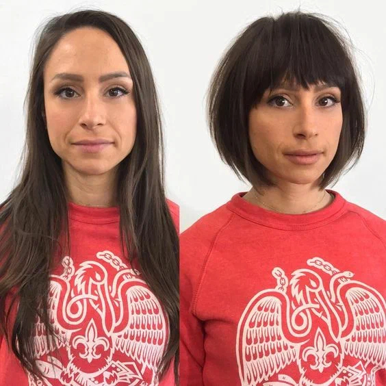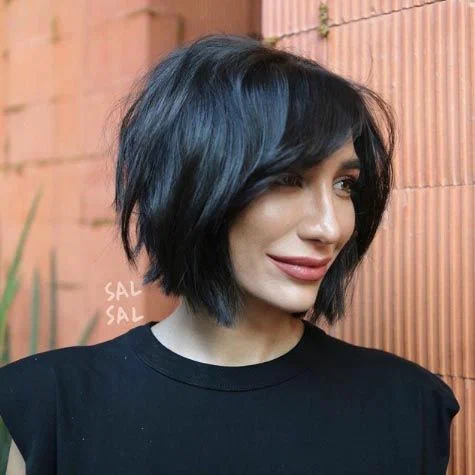 Красуням, які люблять кардинальні зміни в іміджі, підійде жіночна стрижка “боб” з видовженим косим чубчиком. Градуйовані пасма волосся допоможуть досягти об’єму без додаткових стайлінгових засобів.