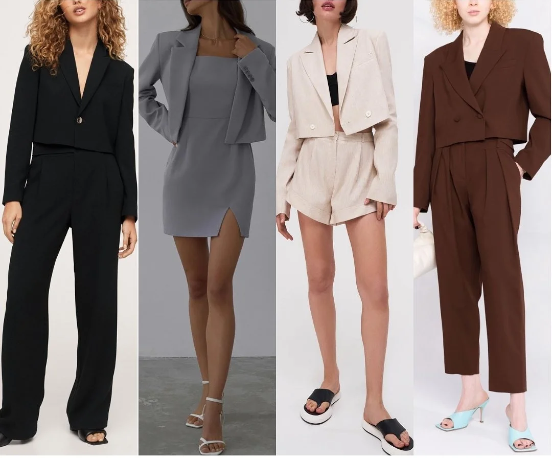 А ось це вже явно трендова модель – не підійде в якості першого і єдиного жакета в гардеробі але, як доповнення до наявної бази – будь ласка. Класно освіжить ділові і кежуал аутфіти, чудово підкреслює талію і подовжує ноги. Вибираючи актуальний укорочений жакет, дивіться, щоб у нього був вільний не приталений крій і рукав повної довжини. Всі приталені і компактні жакетики вже давно не актуальні.