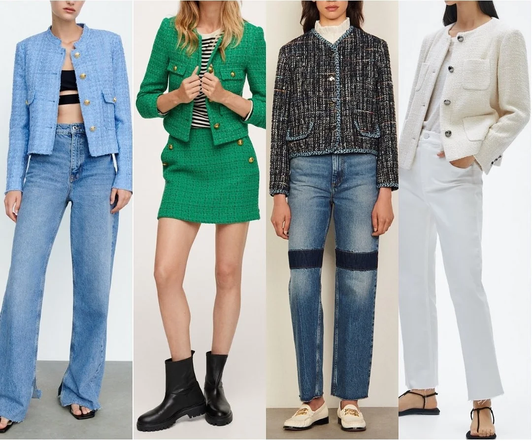 Хочете урізноманітнити свій гардероб? Спробуйте твідові жакети в стилі Шанель (якщо, звичайно, потреби по базі у вас вже закриті, тому що ця модель не базова). Якщо є страх виглядати занадто манірно, поєднуйте твід з максимально простими і розслабленими речами на кшталт джинсів і грубого взуття. Також твід класно виглядає в поєднанні з міні-спідницями: такий комплект точно не буде додавати віку.