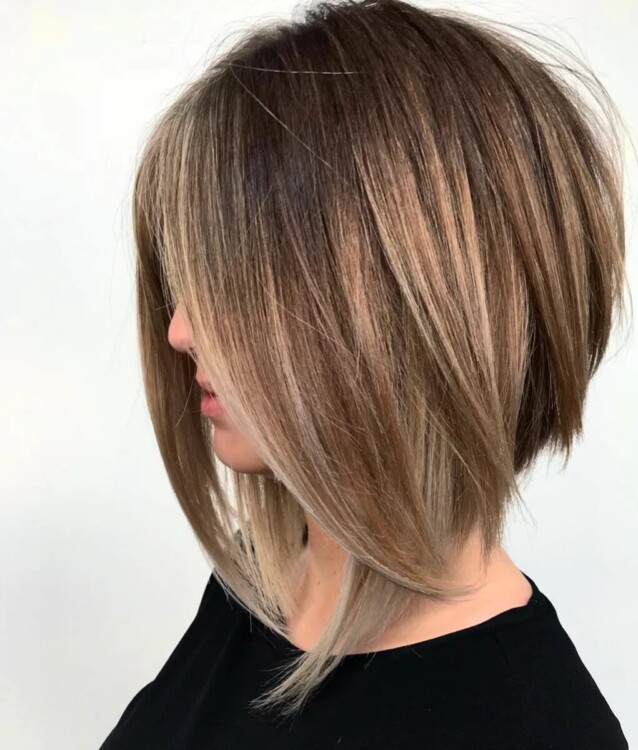 Варто також звернути увагу на стрижку боб з асиметричним проділом. Зачіска допоможе зробити обличчя візуально більш вузьким і подовжить його. Найкраще вона виглядає саме на прямому волоссі, так як укласти такі локони набагато простіше.