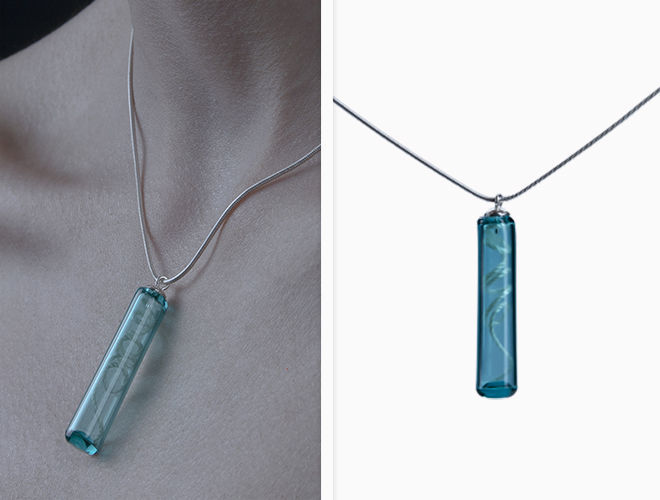 Це унікальна прикраса, яка буде особливо цінною в епоху самовираження і індивідуальності. Усередині скляного кулона зберігається нитка з вашої ДНК, яка збереже інформацію практично навічно. Ви можете вибрати колір (від прозорого до смарагдового) і форму (кругла, у вигляді циліндра, витягнутої краплі, кулі або застиглої лави). А ще це прикраса виглядає дуже оригінально і несе в собі сенс, що людина цінна сама по собі, без зайвих брендів.