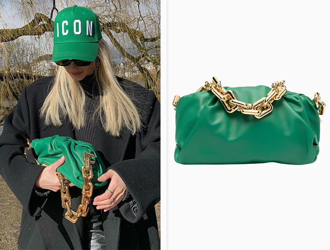 М’який клатч з великим золотим або срібним ланцюгом від Bottega Veneta підірвав світ моди ще пару років назад. З тих пір це культовий аксесуар, який повинен бути в гардеробі кожної жінки (особливо цю сумку обожнює популярний фешн-блогер Леоні Ханне). Сумка круто виглядає з прямим пальто, діловим костюмом, шкіряним тренчем і брюками, лаконічними джинсами і светром, з металевими прикрасами. Відтінок можна вибрати будь-який, від ніжно-пастельного до кричущого металіка або неону.