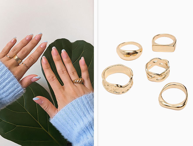 Масивні прикраси стали справжнім хітом сезону 2021 і, по секрету, залишаться актуальними і в 2022 році. Тренд осені – носити кілька кілець на одній руці, і навіть на одному пальці може красуватися кілька штук. Поєднуємо золото і срібло (так-так, позбавляємося від модних стереотипів), тонкі кільця – з великими, рельєфні – з гладкими. А щоб не виглядати як циганка, віддаємо перевагу тонким непомітним прикрасам в області шиї або взагалі від них відмовляємося.