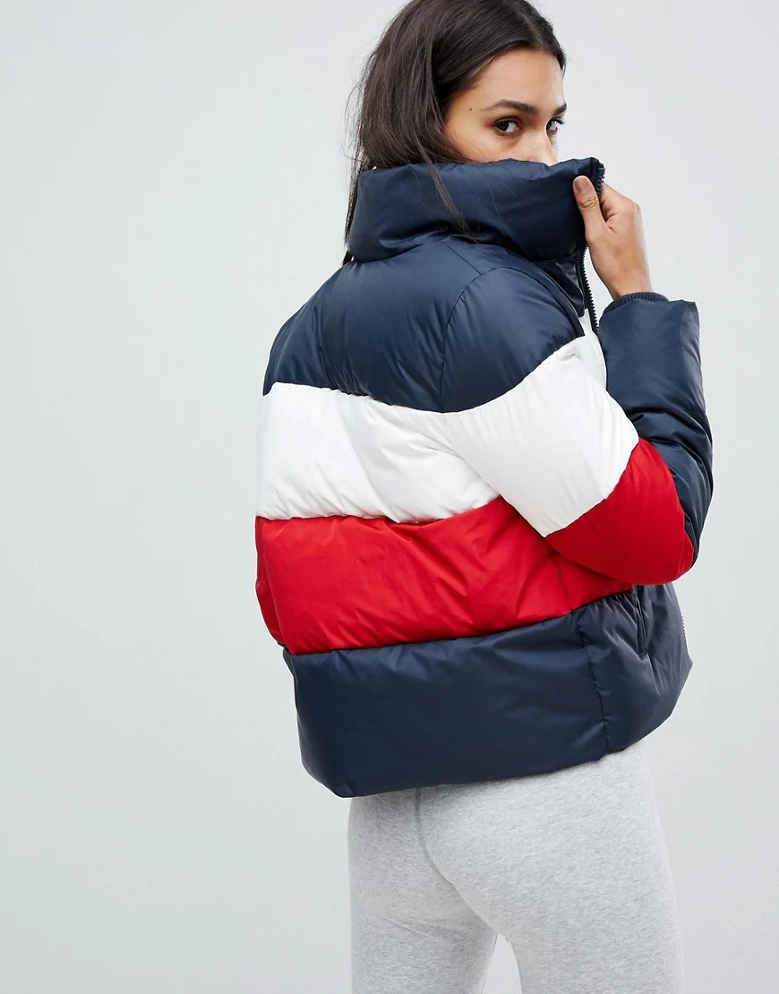 Не менш яскравою тенденцією цієї зими є стиль колор-блоку. Яскравий різнокольоровий декор красиво прикрашає куртки та стане чудовим вибором як для повсякденного, так і спортивного стилю. Актуальні фасони як з контрастними поєднаннями кольорів, так і більш приглушені поєднання відтінків однієї палітри. Моделі, виконані в подібній техніці, зробить будь-який образ особливим.
