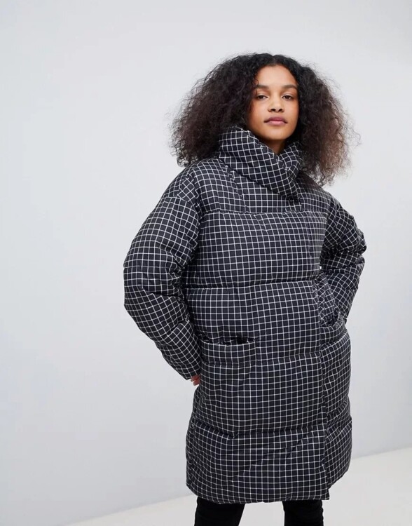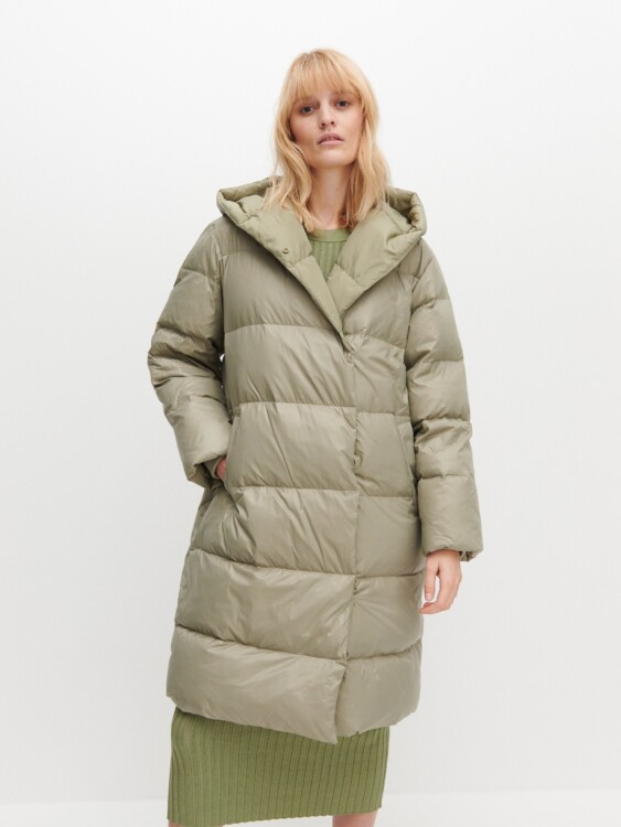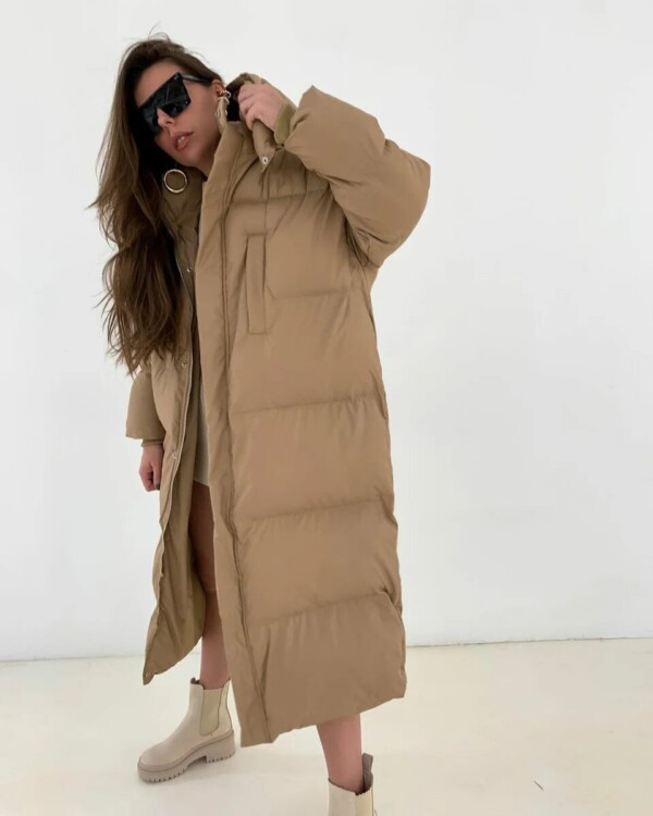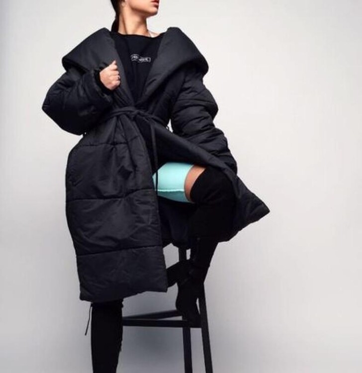 Таку модель називають “гусениця”. Зручно, тепло, і виглядає красиво. Але в таких моделях є один нюанс, якщо пуховик дуже об’ємний і прострочки знаходяться на невеликому рівні одна від одної – візуально така модель буде збільшувати вас в об’ємі.