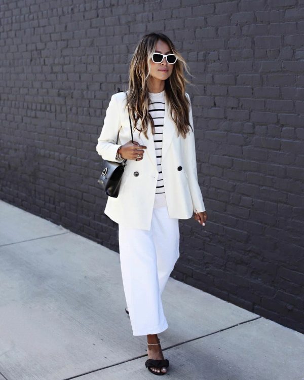 Ще однією обов’язковою покупкою влітку має стати стильний брючний костюм. Краще якщо він складатиметься з укорочених просторих штанів та оверсайз жакета. Це вбрання можна носити як дуетом, так і порізно, комбінуючи штани з іншим верхом. Жакет, до речі, можна окремо носити з легкими літніми сукнями.