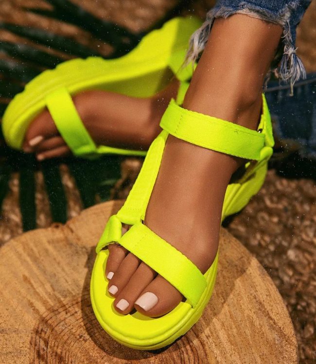 Про взуття також не варто забувати. Якщо говорити про літо 2022 року, то тут найкраще звернути увагу на ультрамодні босоніжки: неонові біркенштоки, сандалії на плоскій підошві з тонкими перемичками, босоніжки на невеликому масивному підборі – саме вони займають топові рядки цього сезону.