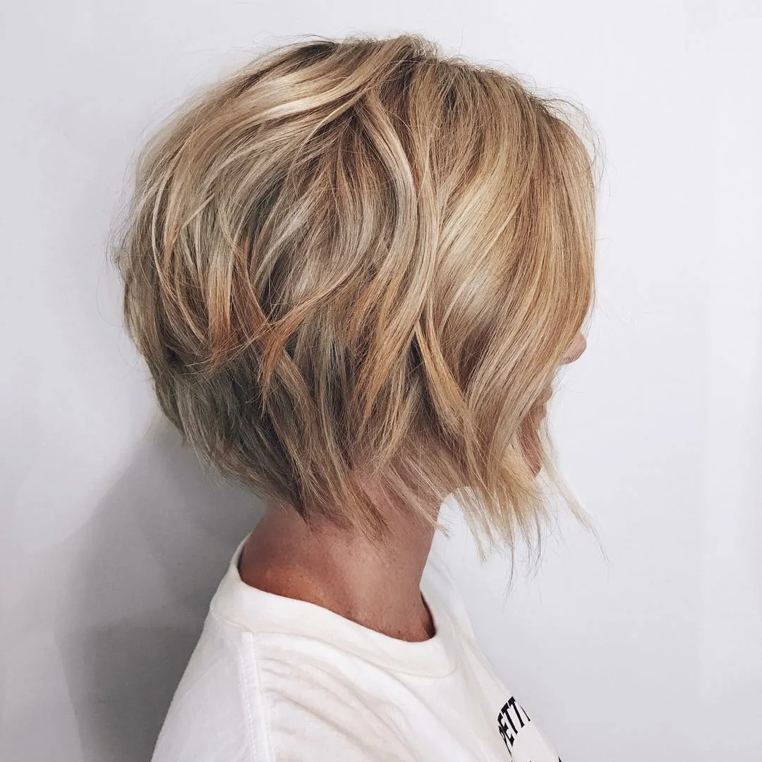 Багатошарові стрижки – це те, що потрібно для жінок у віці. Хаотичність і навмисна недбалість зачіски додає образу динамізму і молодості. А якщо пофарбувати волосся в модний колір сезону, який посилить ефект омолодження, то жінка буде виглядати на всі 100.