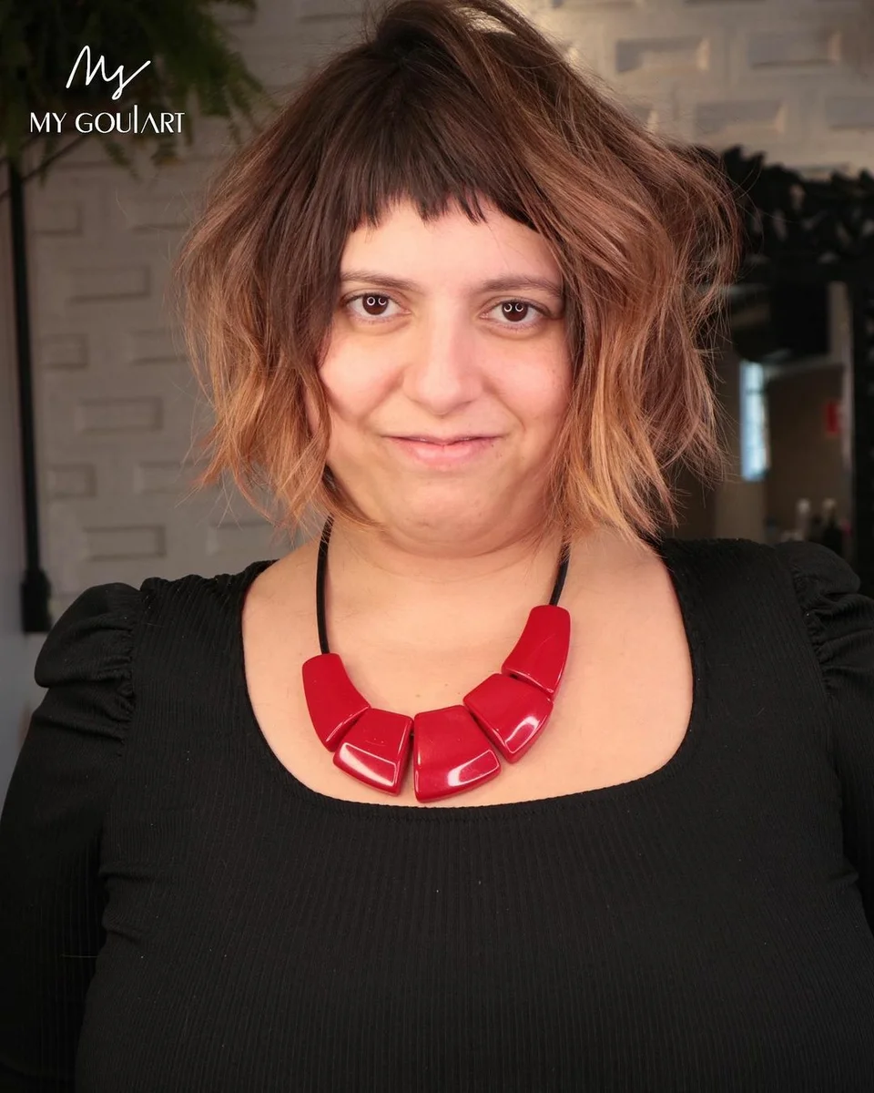 Рвана стрижка боб-каре з чубчиком