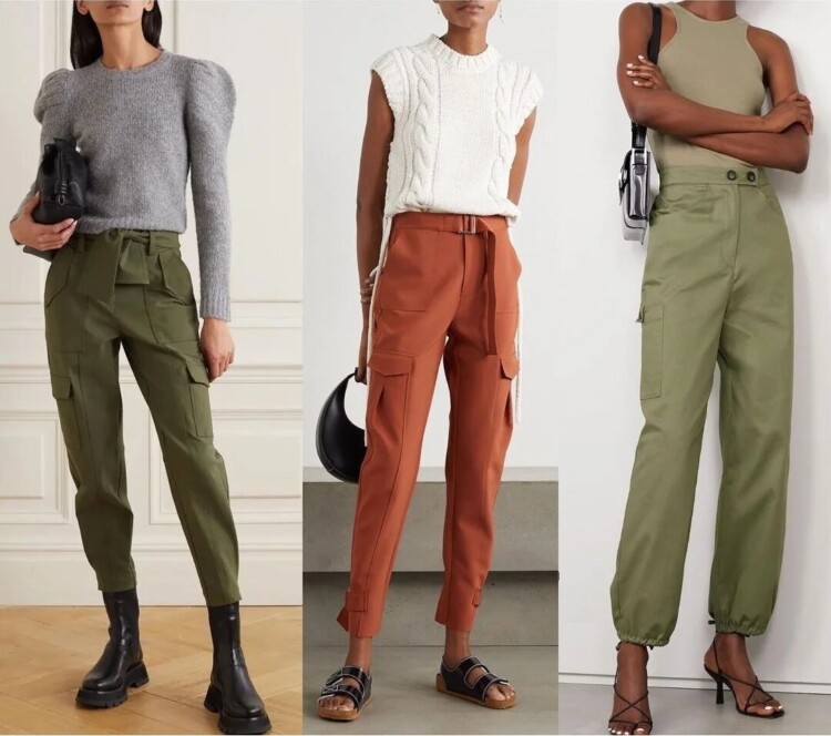 Любителі стилю сафарі і мілітарі можуть спокійно продовжувати носити брюки-карго: в цьому році вони все ще залишаються актуальними, дуже класно впишуться в весняно-літний гардероб.