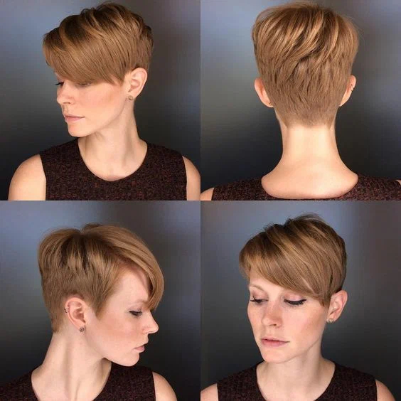 Якщо ви втомилися від тонкого і “неслухняного” волосся, яке складно подається будь-яким укладанням, значить настав час поміняти стрижку. Ефектна піксі з подовженим косим чубчиком, поголеними скронями і потилицею прийде вам на допомогу. З цією стрижкою ви знову полюбите своє волосся.