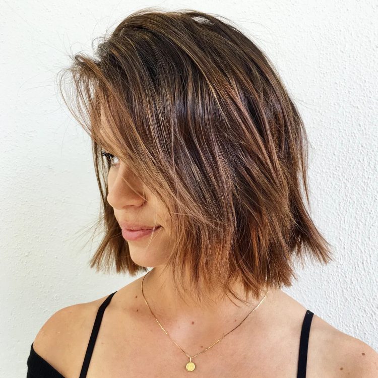 Текстурований боб з бічним проділом та подовженим чубчиком підійде романтичним натурам, які прагнуть виглядати максимально витончено та доглянуто. Якщо вашим першочерговим завданням є надання волоссю об’єму від самого коріння, значить придивіться до цієї моделі стрижки боб. Правильний зріз волосся та філірування по всій довжині дозволяють економити час при створенні модних укладок.