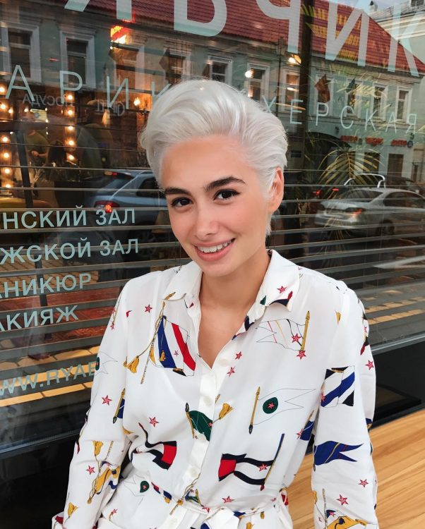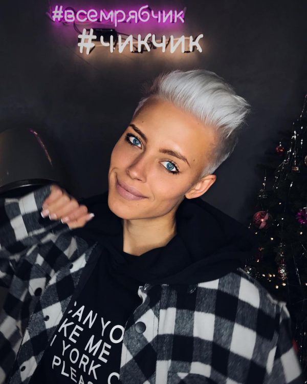 Симпатично і досить сміливо виглядають короткі стрижки без чубчика, де волосся прибрано назад. Для цього локони можна підняти біля коріння і за допомогою стайлінгу закріпити їх. Завдяки відкритій зачісці, ви можете показати свою головну перевагу – гарні очі. Не варто боятися вікових змін, смілива стрижка візьме на себе весь акцент.