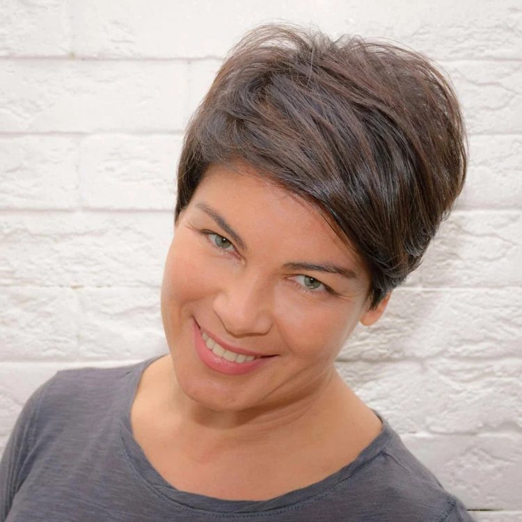 Більше того, стрижка піксі вигідно відводить погляд від проблемних зон. А саме від другого підборіддя, короткої шиї та пухких щік.